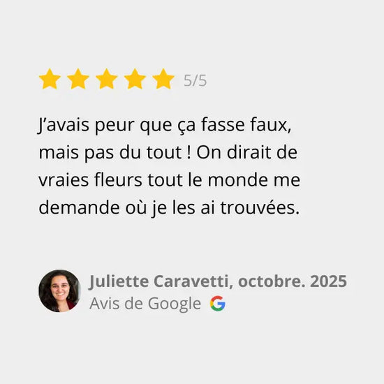 Je comprends ta peur, c’est une des premières préoccupations avec les fleurs artificielles ! Mais avec nos bouquets, tu n’as rien à craindre :